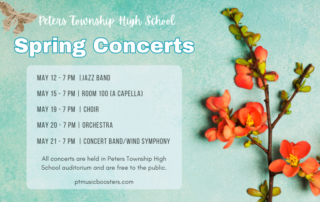The Peters Township Music Boosters (PTMB) is pleased to offer six (6) $1,000.00 scholarships to eligible PT Seniors! Please review the scholarship packet for complete details, including eligibility and application instructions. Completed application forms and essays must be dropped off in the PTHS counseling office no later than 2:30 pm, Friday, March 27, 20 [...]