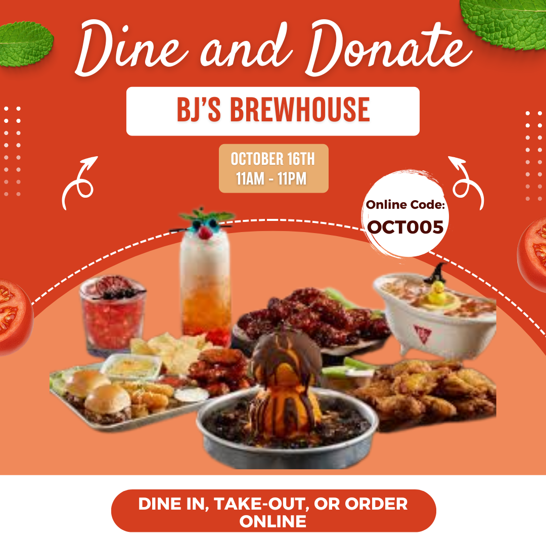 View Larger Image BJ’s Brewhouse Dine and Donate Join us a BJ’s Brewhouse on Thursday, October 16th for a Dine and Donate. Dine-in or take-out between 11am and 11pm to earn 20% back for PTMB! Simply show our flyer, or enter code OCT005 if ordering online. Thank you for your continued support! Camille Bodnar2025-09-28T20:38:37-04:00September 28th, 2025|